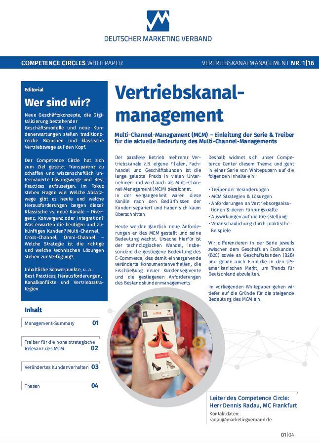 Der parallele Betrieb mehrerer Absatzkanäle z.B. eigene Filialen, Fachhandel und Geschäftskunden ist die lange gelebte Praxis in vielen Unternehmen und wird auch als Multi-Channel-Management (MCM) bezeichnet. In der Vergangenheit waren diese Kanäle nach den Bedürfnissen der Kunden separiert und haben sich kaum überschnitten. Heute werden gänzlich neue Anforderungen an das MCM gestellt und die Bedeutung wächst.